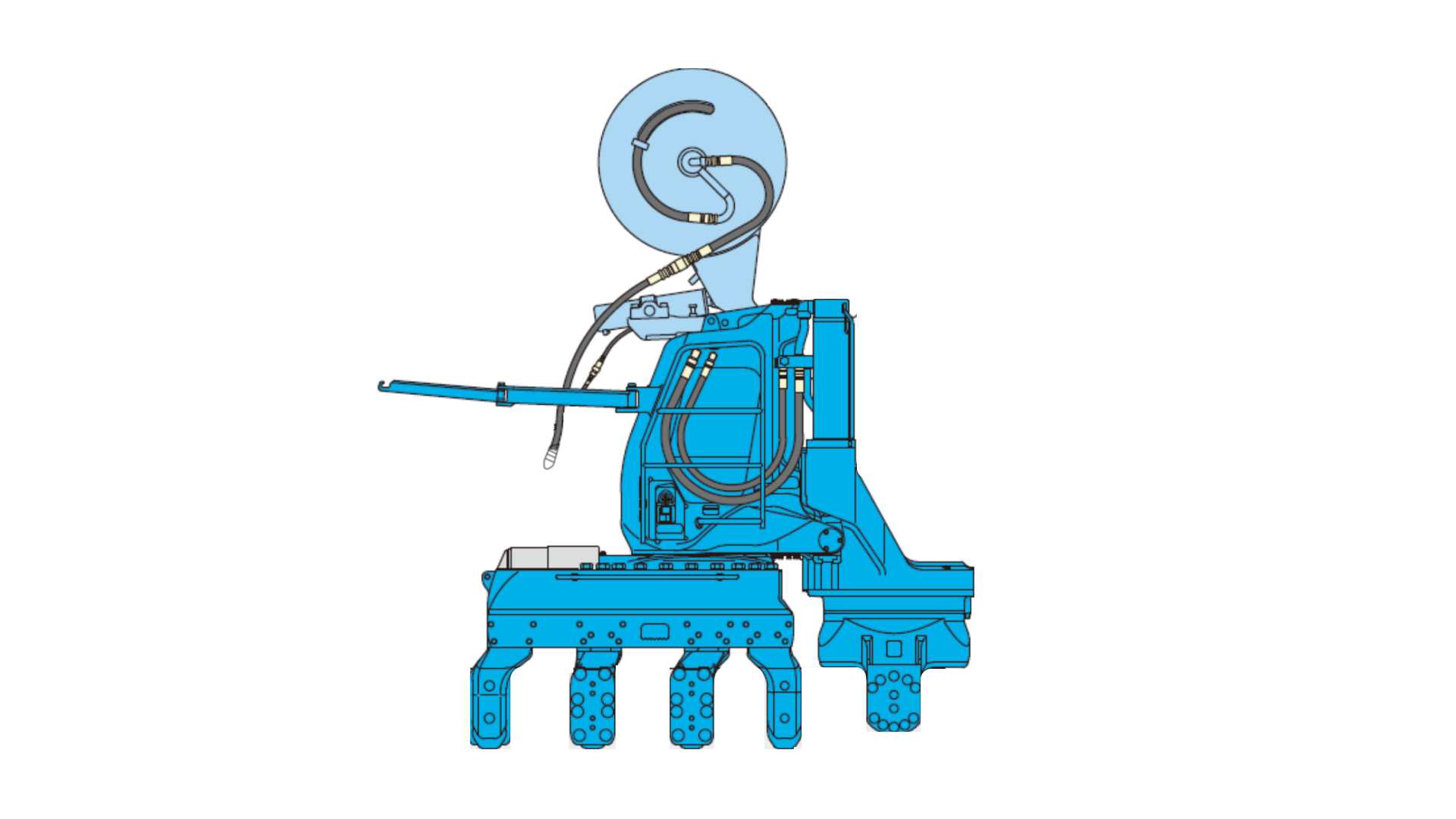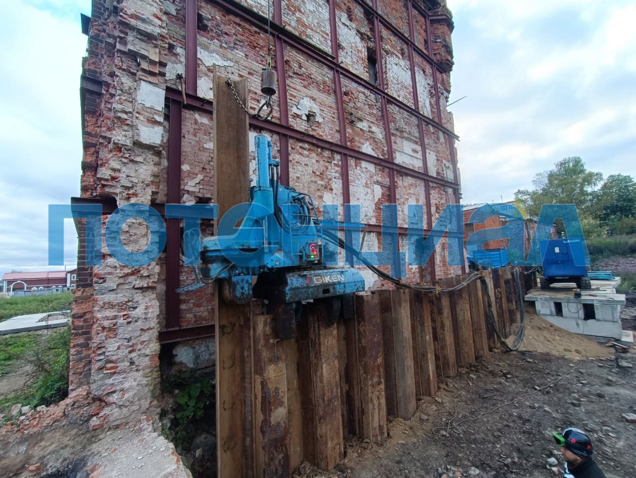Вдавливающая установка для стальных шпунтовых свай Giken Silent Piler F201 (производство Япония) для профиля шириной 500-600 мм, таких как Л5-УМ, VL, GU. Максимальное гидравлическое усилие при вдавливании 95 тонн, при извлечение 105 тонн.